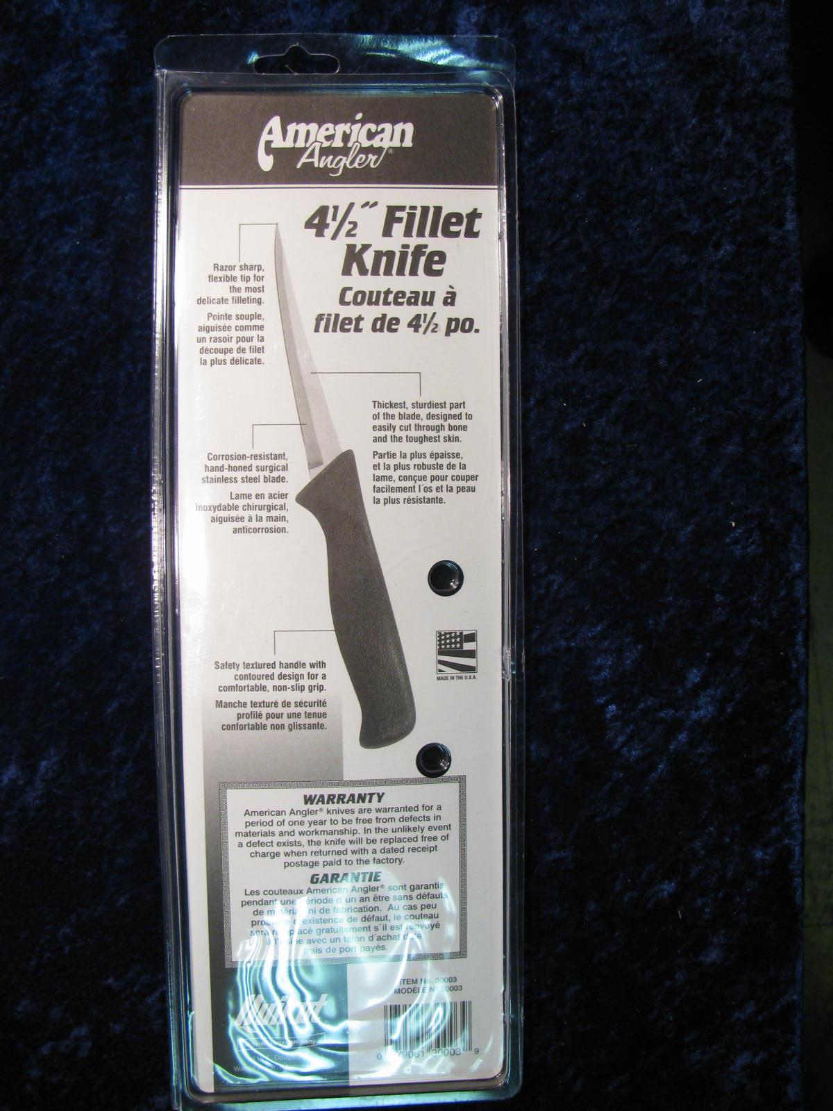 2460. American Angler 4 1/2" Fillet Knife With Sheath. New