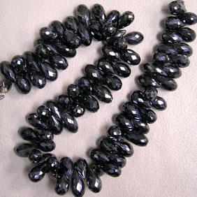 BLACK MYSTIC SPINEL BRIOLETTE STRAND. IT WEIGHTS 247 CTS AND MEASURE 10x5 MM. INCLUDED