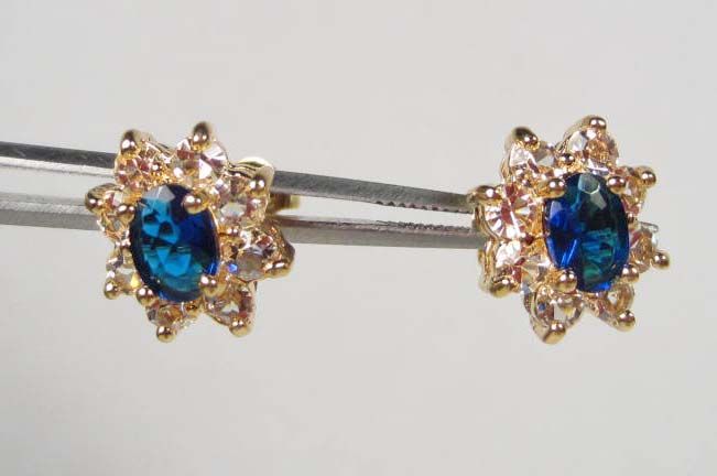 2473 - PAIR OF 14K GOLD PLATED BLUE SAPPHIRE EARRINGS