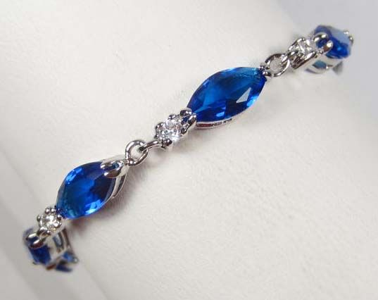 2477 - WHITE GOLD PLATED BLUE SAPPHIRE BRACELET