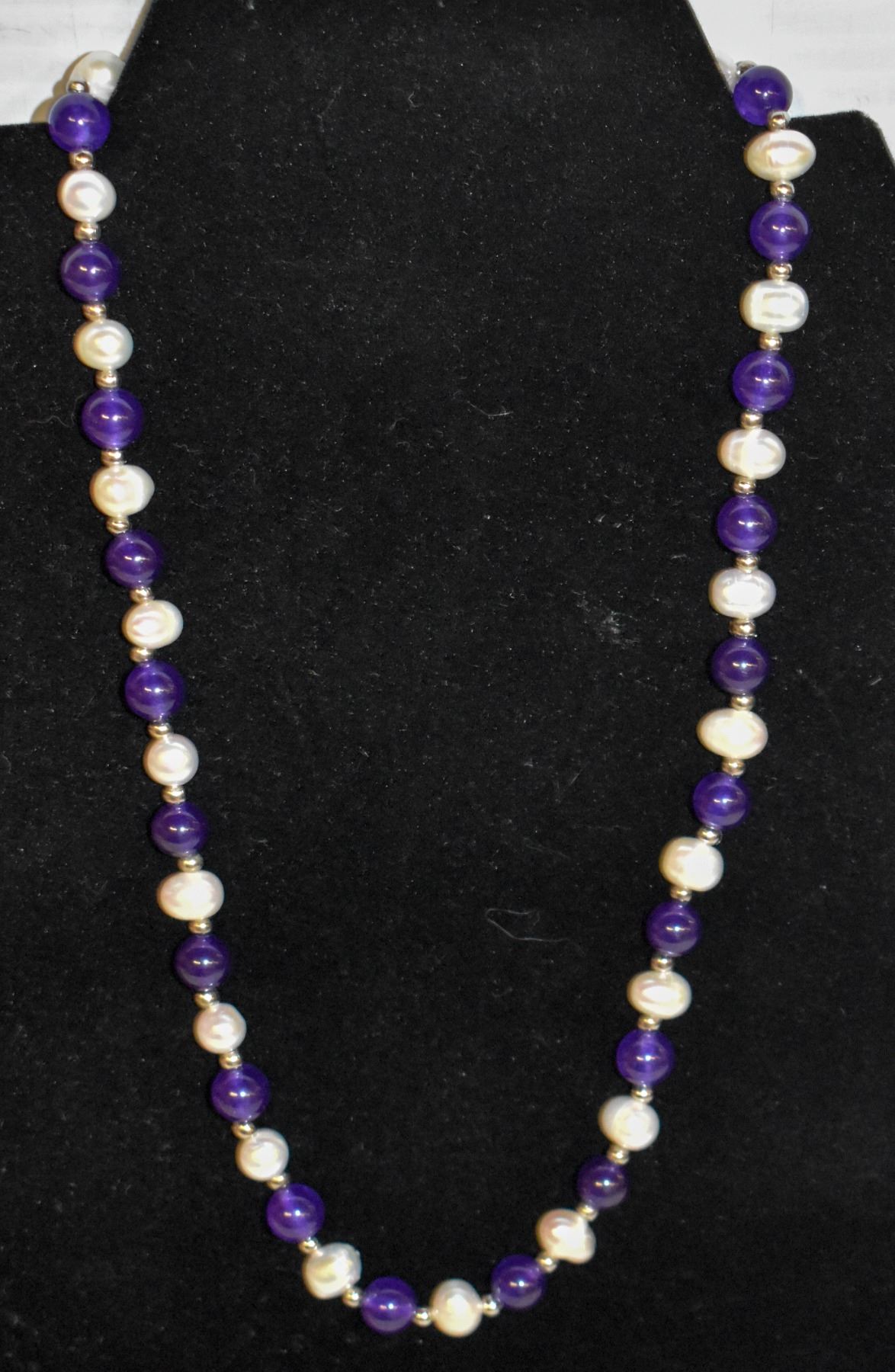 #248-NATURAL AMETHYST, FRESH WATER PEARL NECKLACE