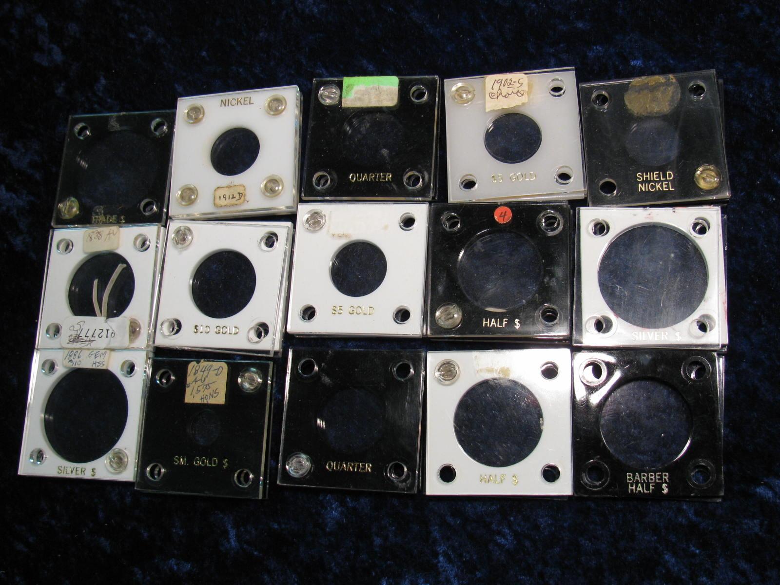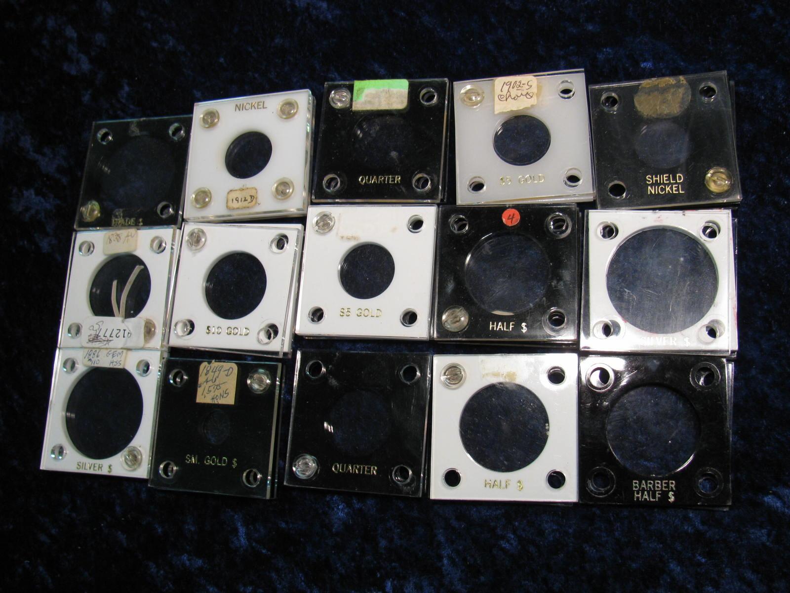2486. (14) Assorted Capital Plastic Coin Holders. For U.S. Nickels,Halve,Dollars & Gold Coins. Used