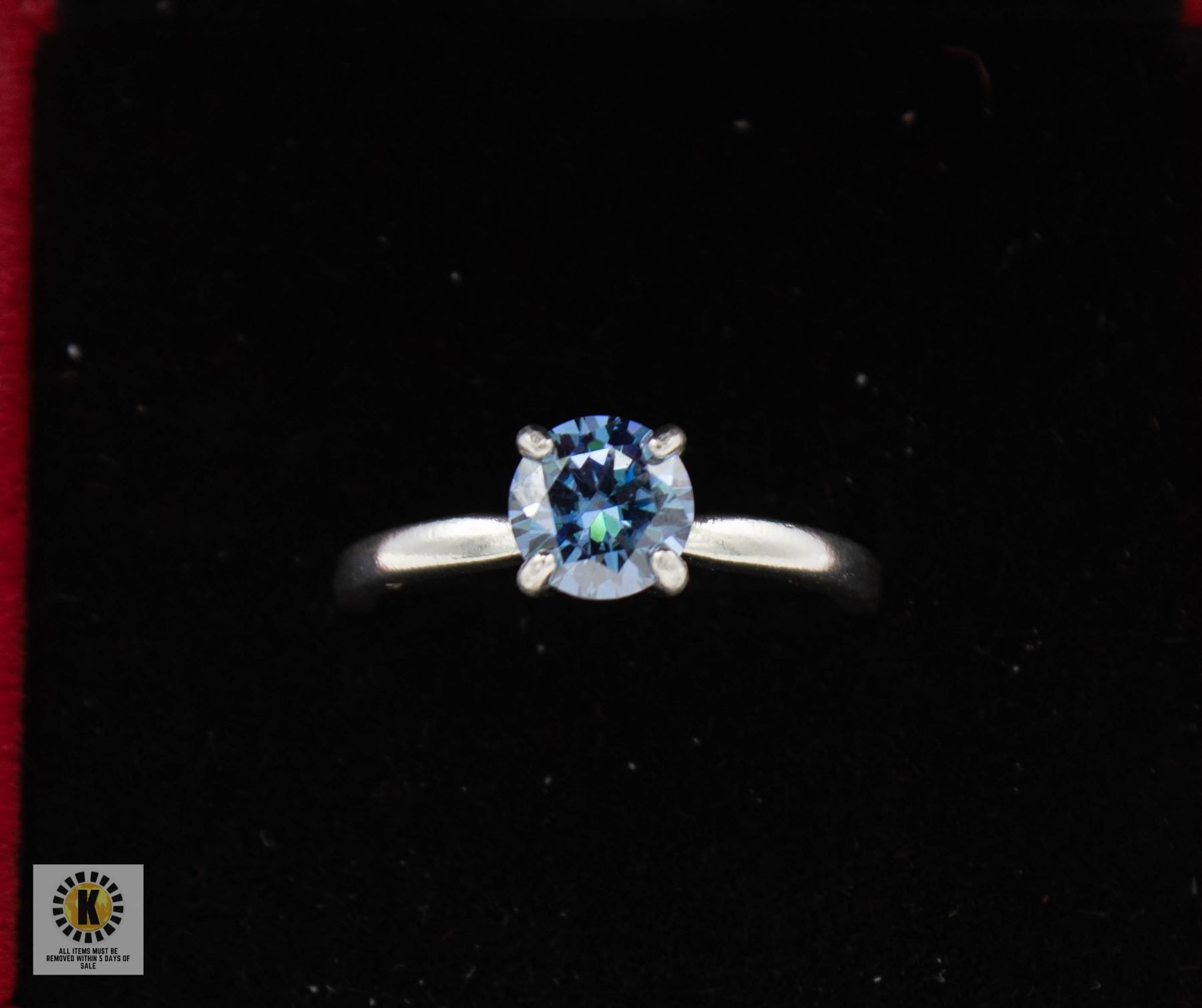 MOISSANITE STONE VVS FANCY VIVID BLUE COLOR SET IN 4 CLAW HEAD SET IN 925 SILVER RING SIZE 7 **ALL ITEMS MUST BE REMOVED BY 5PM SATURDAY, APRIL 26TH 2025. ALL REMAINING ITEMS WILL BE SUBJECT TO A $6.00 PER DAY STORAGE CHARGE. ANY ITEMS REMAINING AFTER MONDAY, MAY 12TH 2025 WILL BE CONSIDERED FORFEITED. NO REFUNDS WILL BE ISSUED FOR FORFEITED ITEMS. TO SCHEDULE A PICK UP APPOINTMENT CLICK HERE