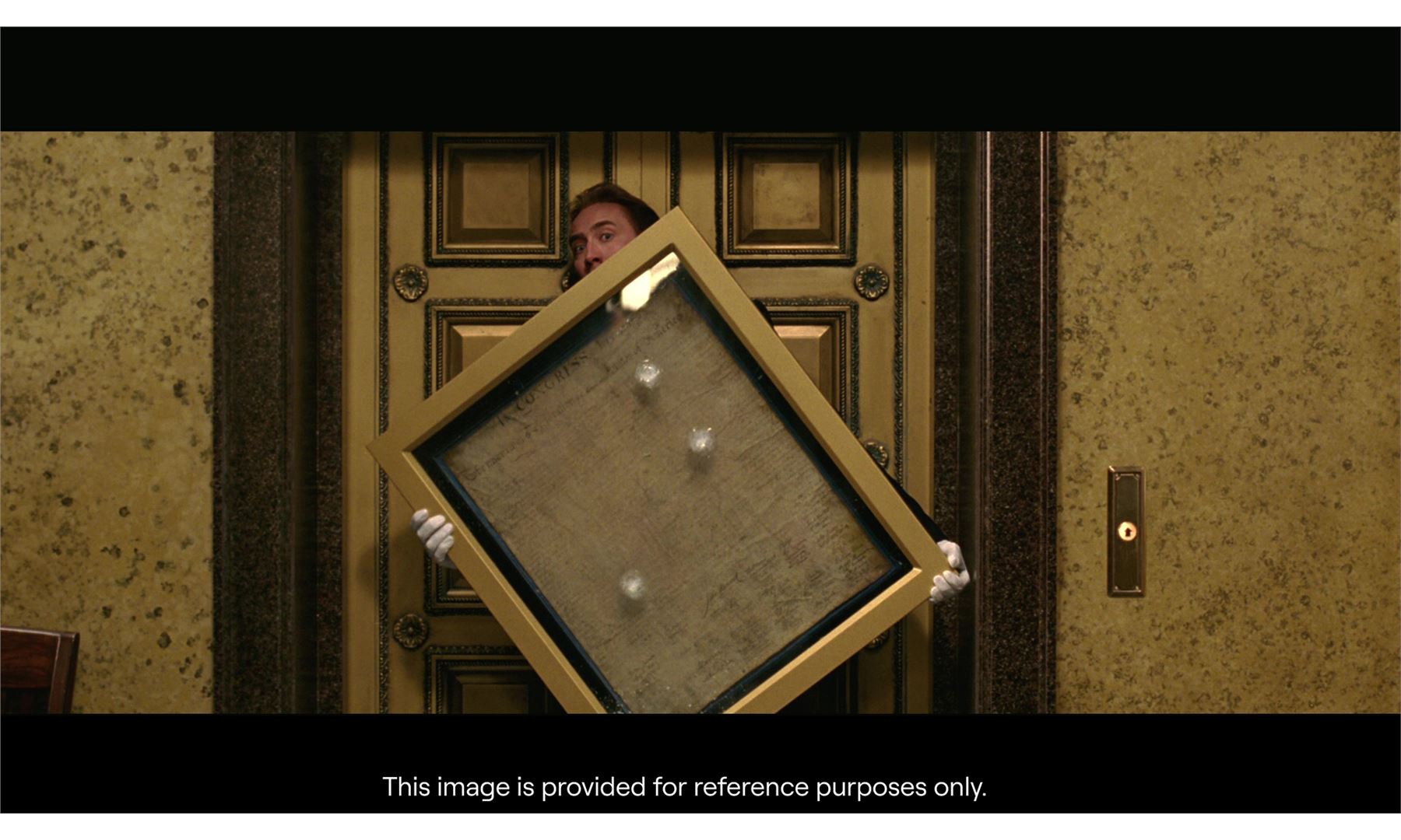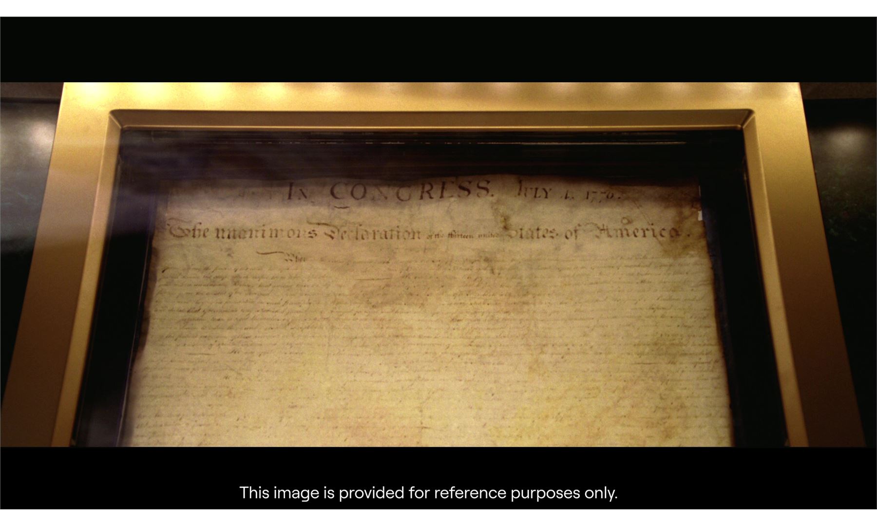 NATIONAL TREASURE (2004) - Declaration of Independence - The Declaration of Independence from Jon Turteltaub's National Treasure. Treasure hunter Ben Gates (Nicholas Cage) stole the Declaration of Indepence to decode secret messages concealed on it.
