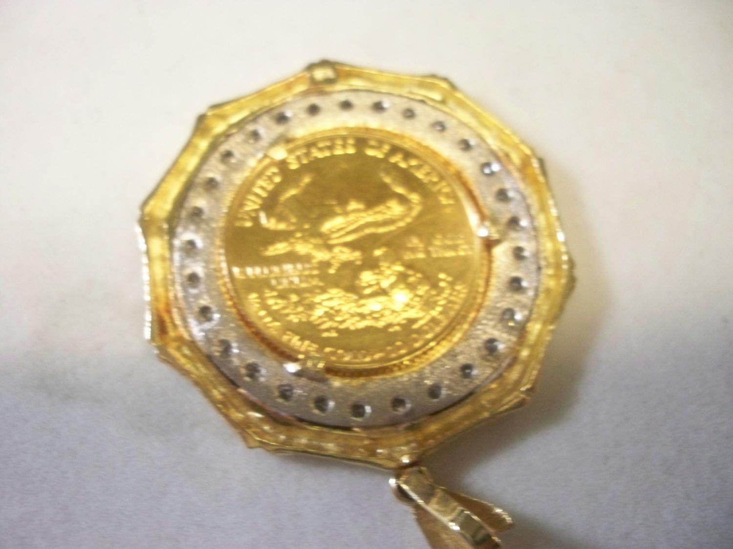 24K $10 Gold Eagle Coin and 3/4 Carat Diamonds Pendant