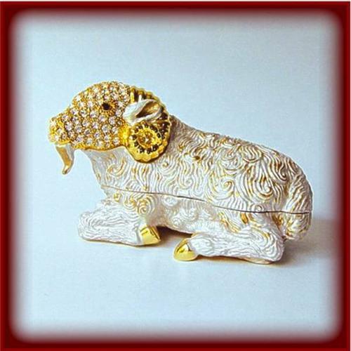 24K GOLD ARIES RAM SWAROVSKI CRYSTAL JEWELRY BOX D-352
