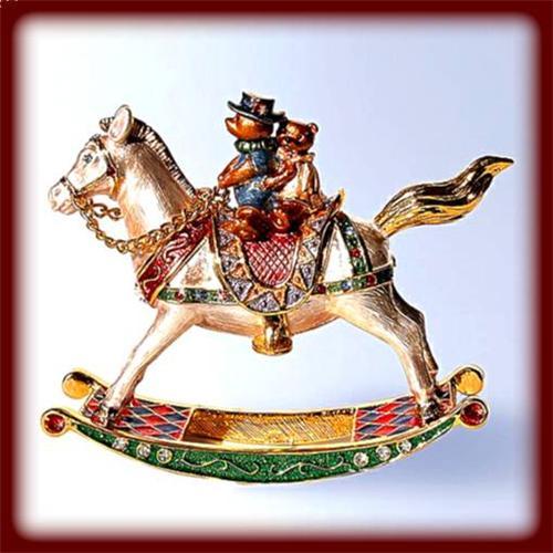 24K GOLD CRYSTAL BABY ROCKING HORSE TEDDY BEAR BOX TOYS