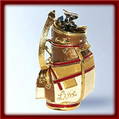 24K GOLD GOLF BAG SWAROVSKI CRYSTAL JEWELRY BOX D-144