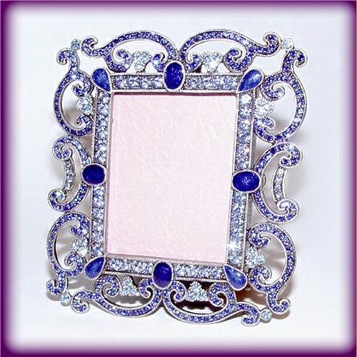 24K GOLD ORNATE BLUE SWAROVSKI CRYSTAL PHOTO FRAME P-12 BL