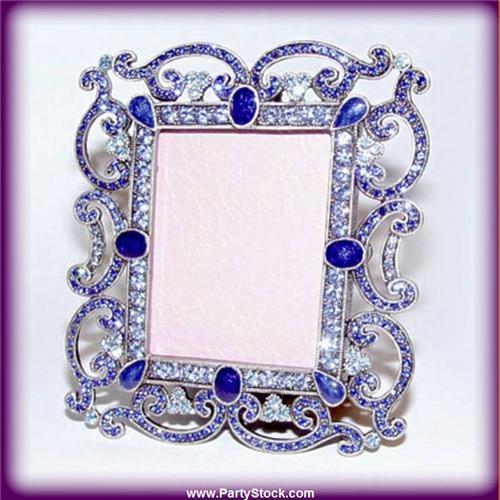 24K GOLD ORNATE BLUE SWAROVSKI CRYSTAL PHOTO FRAME P-12 BL