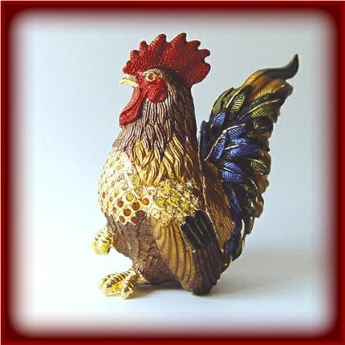 24K GOLD & SWAROVSKI CRYSTALS ROOSTER JEWELRY BOX
