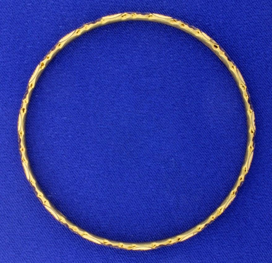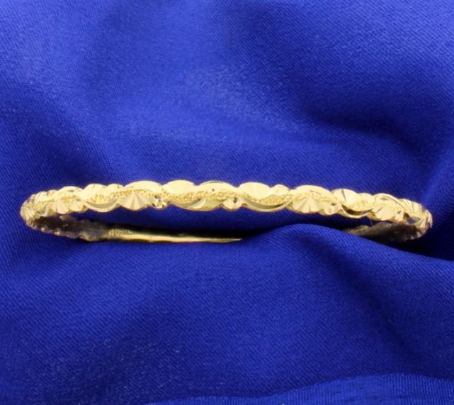 This 24K yellow gold bangle is 2 3/4 inches in diameter and 4.5mm thick. 11.5g
