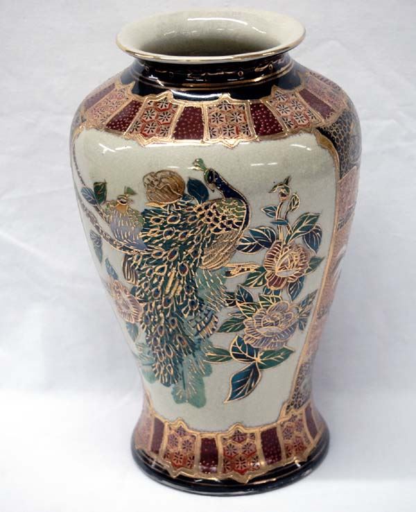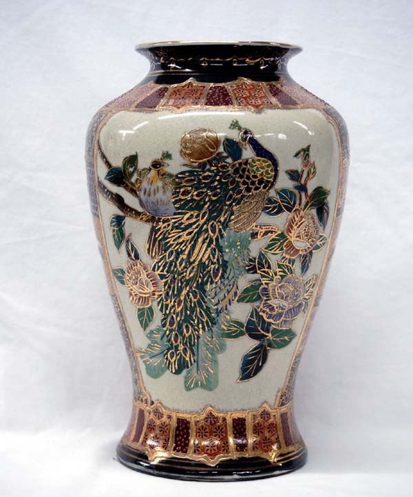 Elegant 24K Gold Gilt Oriental Peacock Vase, measures 10''H x 6.5''W