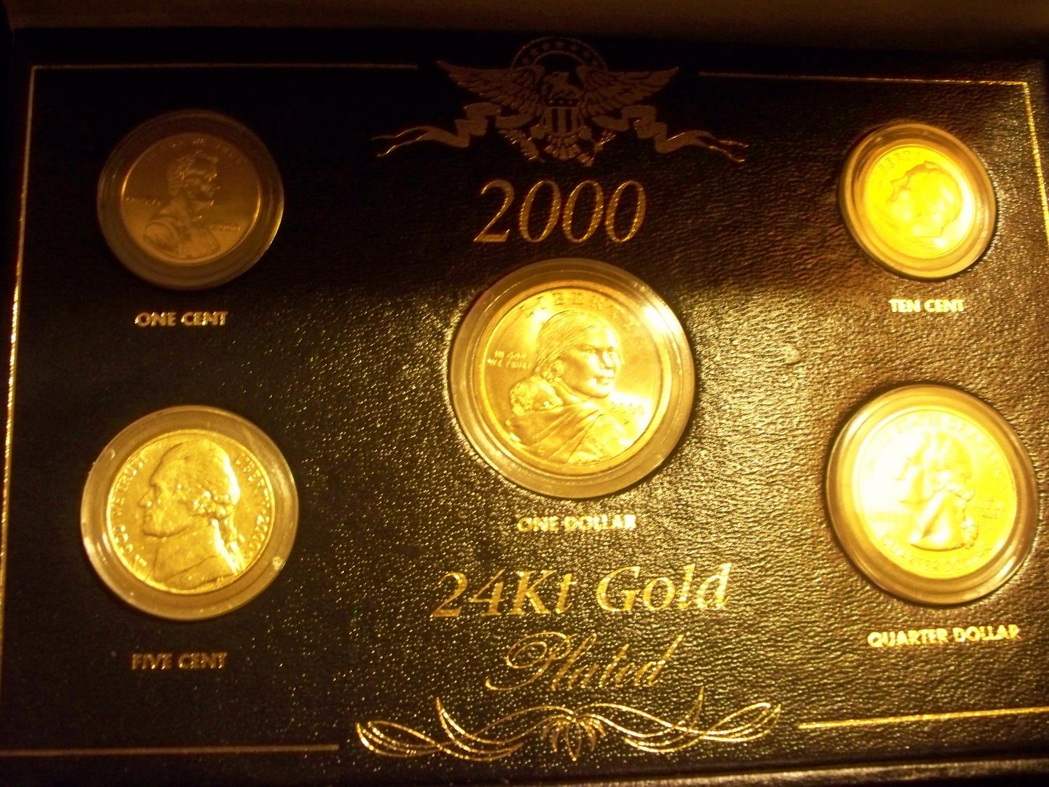 24K Gold Plated Commemorative Set - 1 cent, 1 nickel, 1 dime, 1 quarter, and 1 dollar coin