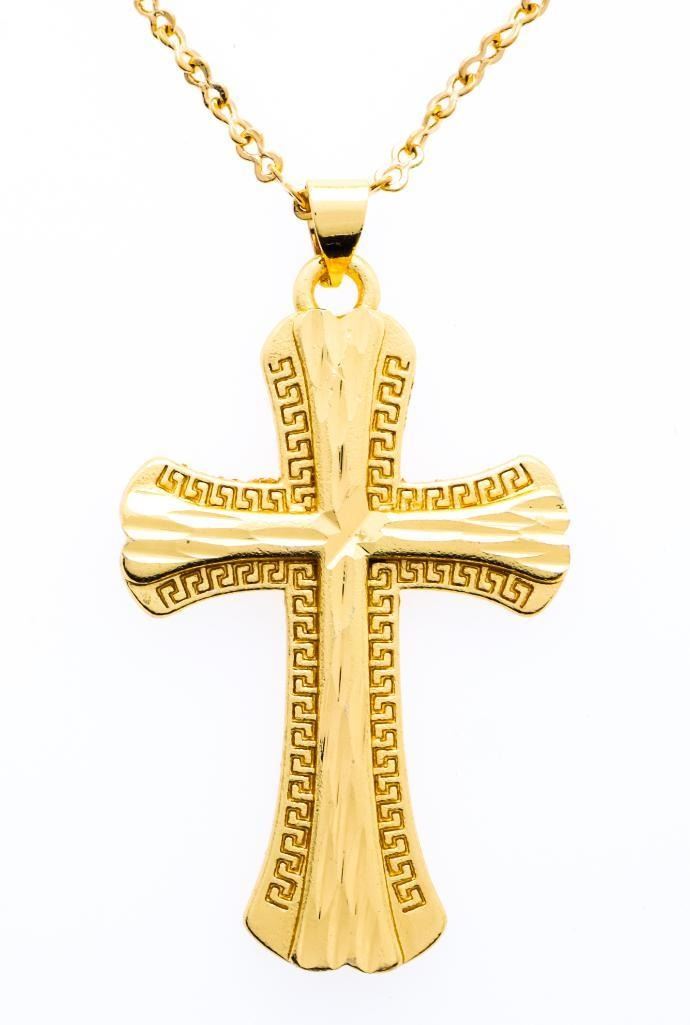 24KT G.P. /STAINLESS STEEL NECKLACE, Cross Pendant & Chain