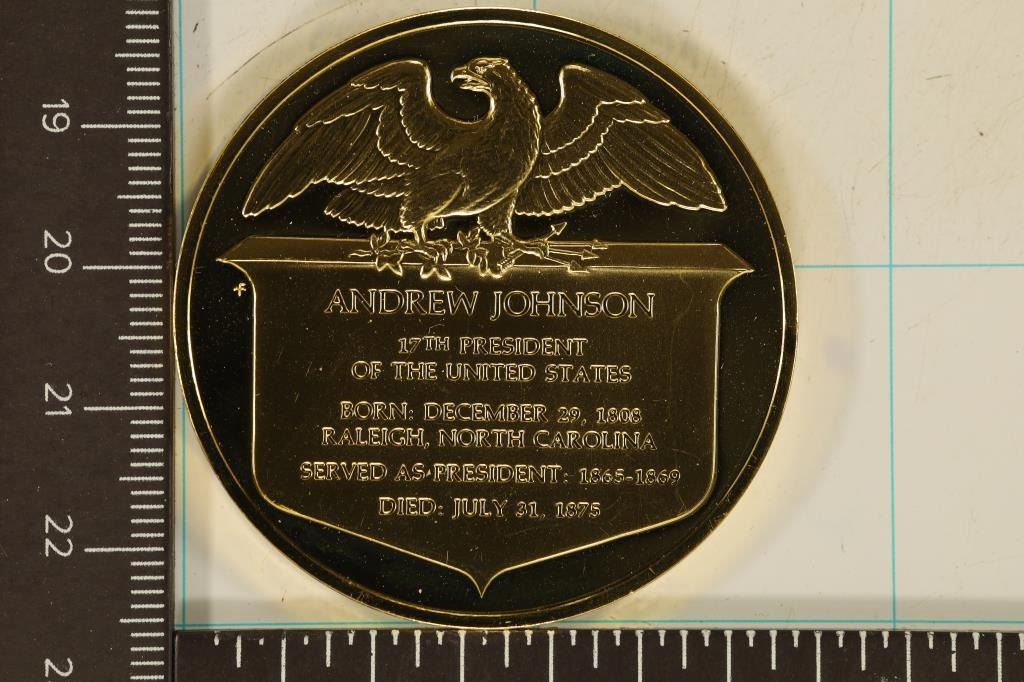 SILVER PRESIDENTIAL ROUND, ANDREW JOHNSON, PROOF IN HARD PLASTIC CAPSULE