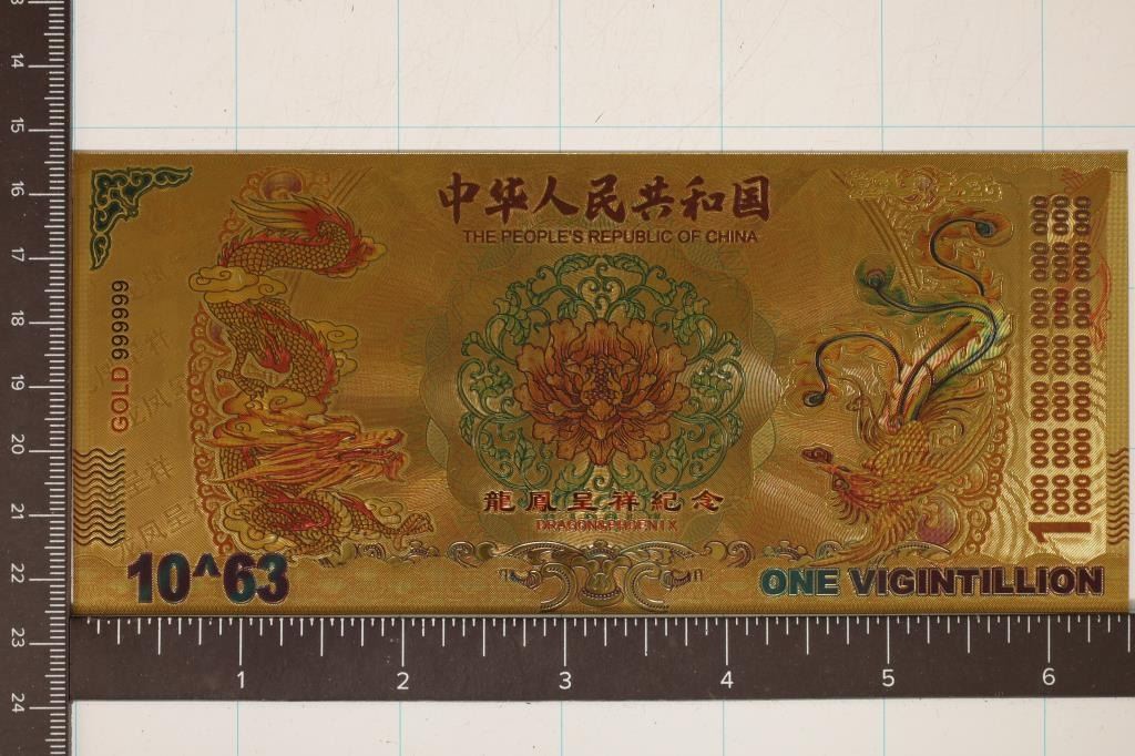 VIGINTILLION CRISP UNC COLORIZED DRAGON AND PHEONIX BILL