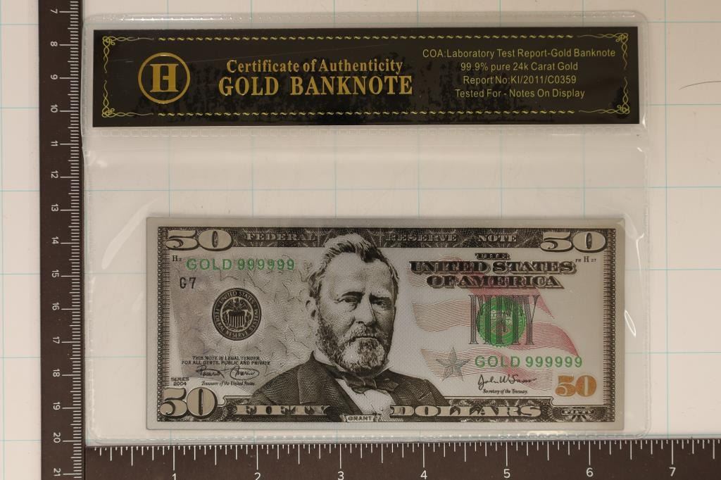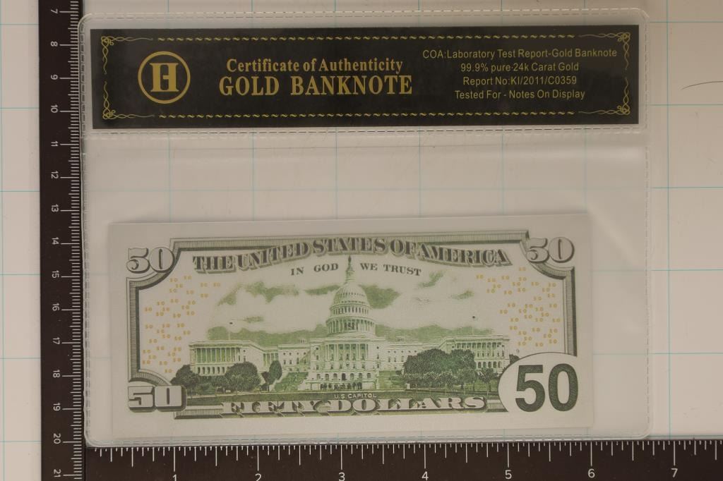 CERTIFICATE OF AUTHENTICITY GOLD BANK NOTE SLEEVE