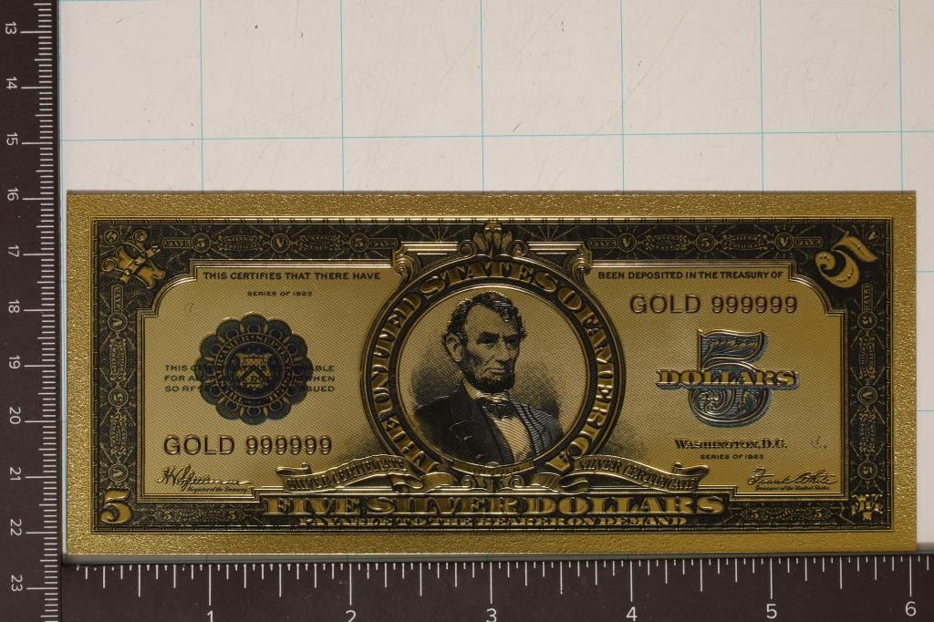 CERTIFICATE, MARKED GOLD 999999 WITH ABRAHAM LINCOLN ON IT