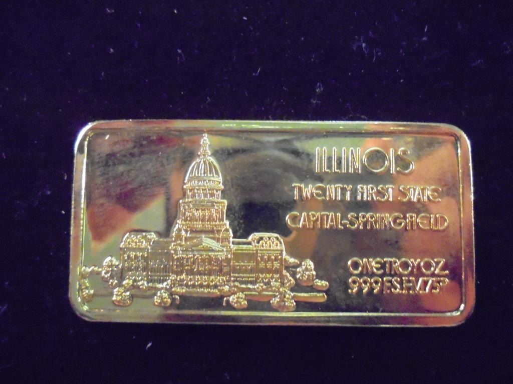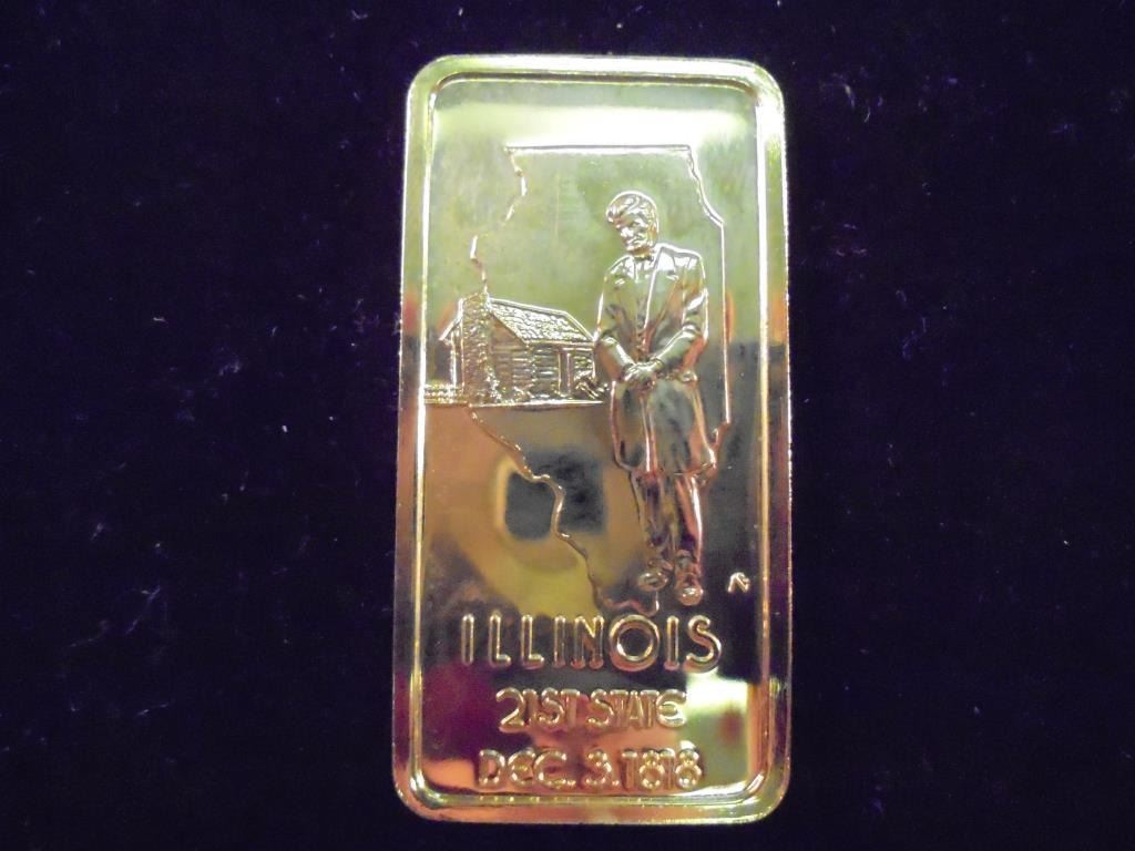24KT GOLD PLATED 1 OZ. SILVER INGOT ILLINOIS