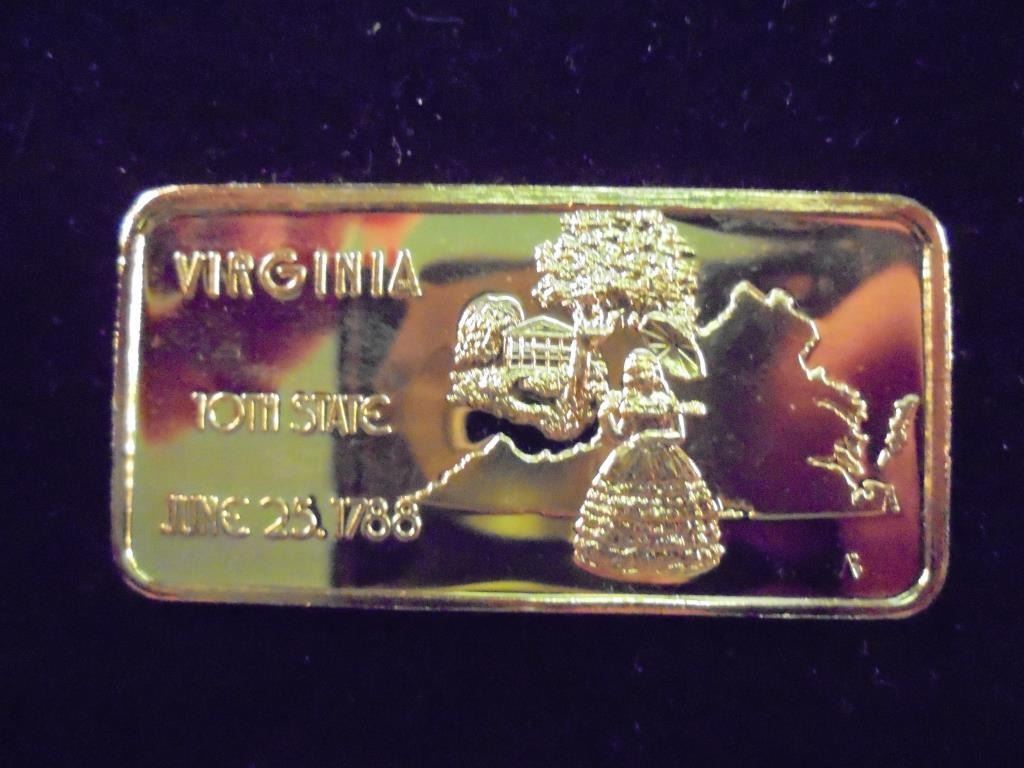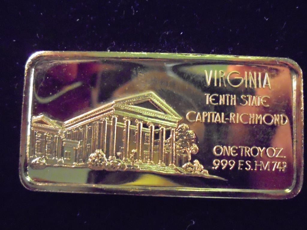 24KT GOLD PLATED 1 OZ. SILVER INGOT (VIRGINIA)