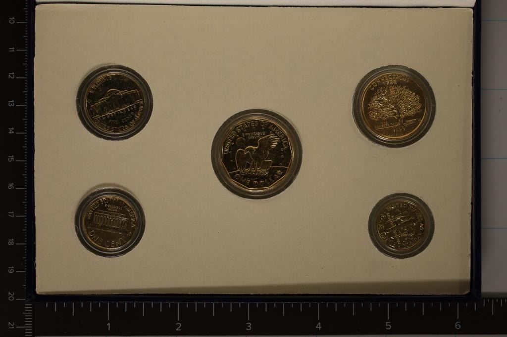 LINCOLN CENT, JEFFERSON NICKEL, ROOSEVELT DIME, WASHINGTON QUARTER AND SBA DOLLAR IN NICE BLUE FLIP CASE