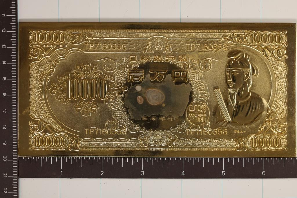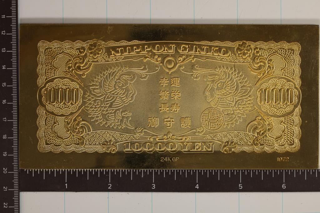 10,000 YEN BILL. 6.18 OZ TOTAL WEIGHT, WITH TONING / TEST SPOT ON OBVERSE