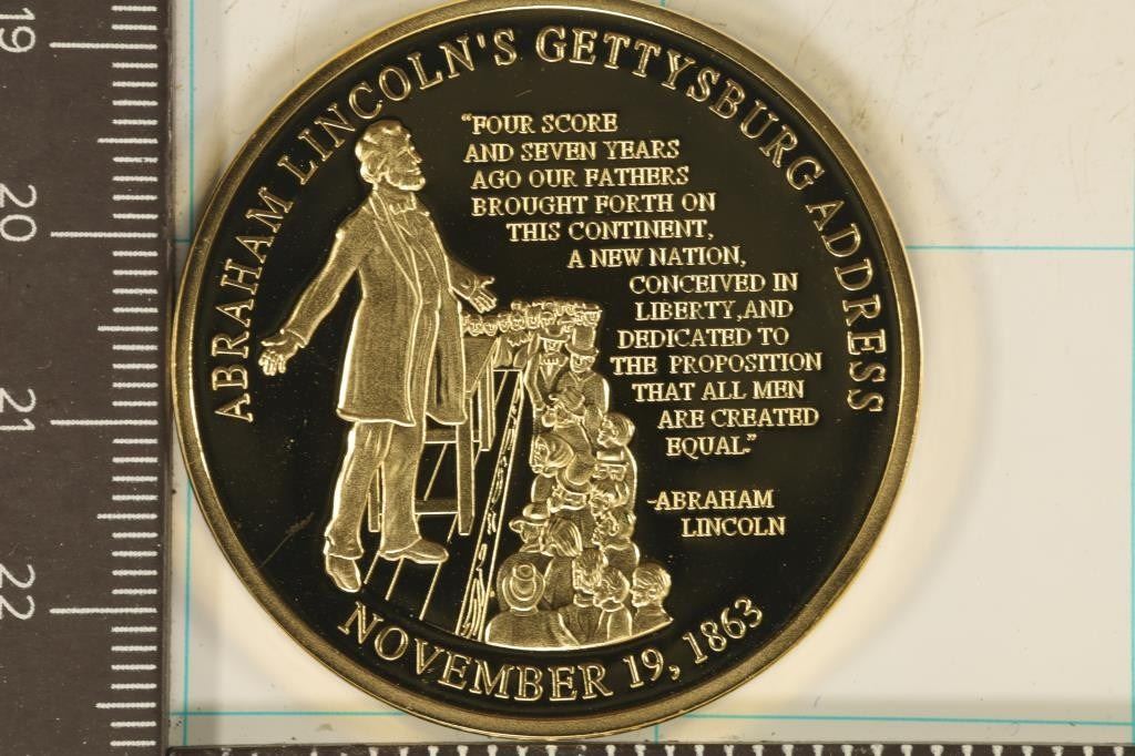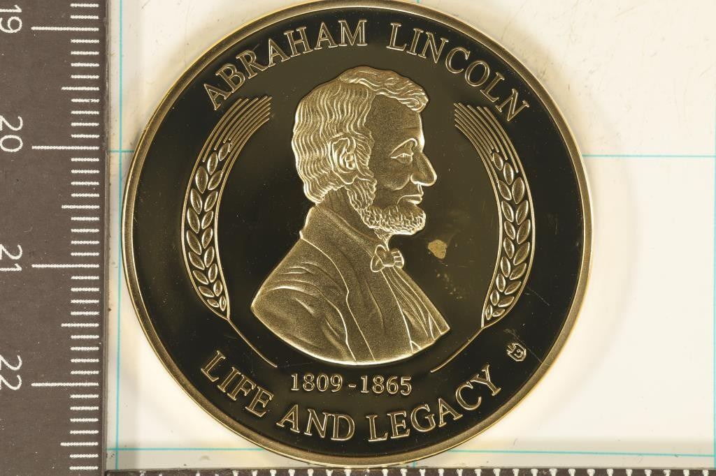 LINCOLN LIFE AND LEGACY ROUND. 32 GRAMS 40 MM IN HARD PLASTIC CAPSULE BY THE AMERICAN MINT, WITH SPOT