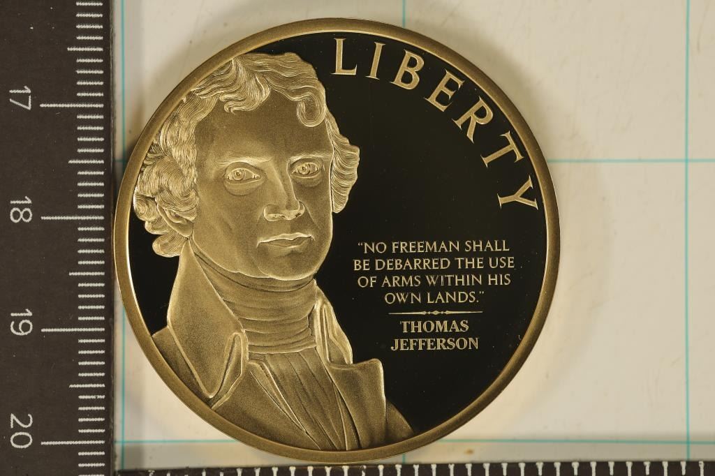 THOMAS JEFFERSON, 32 GRAMS AND 40MM IN DIAMTER, IN HARD PLASTIC CAPSULE BY THE AMERICAN MINT