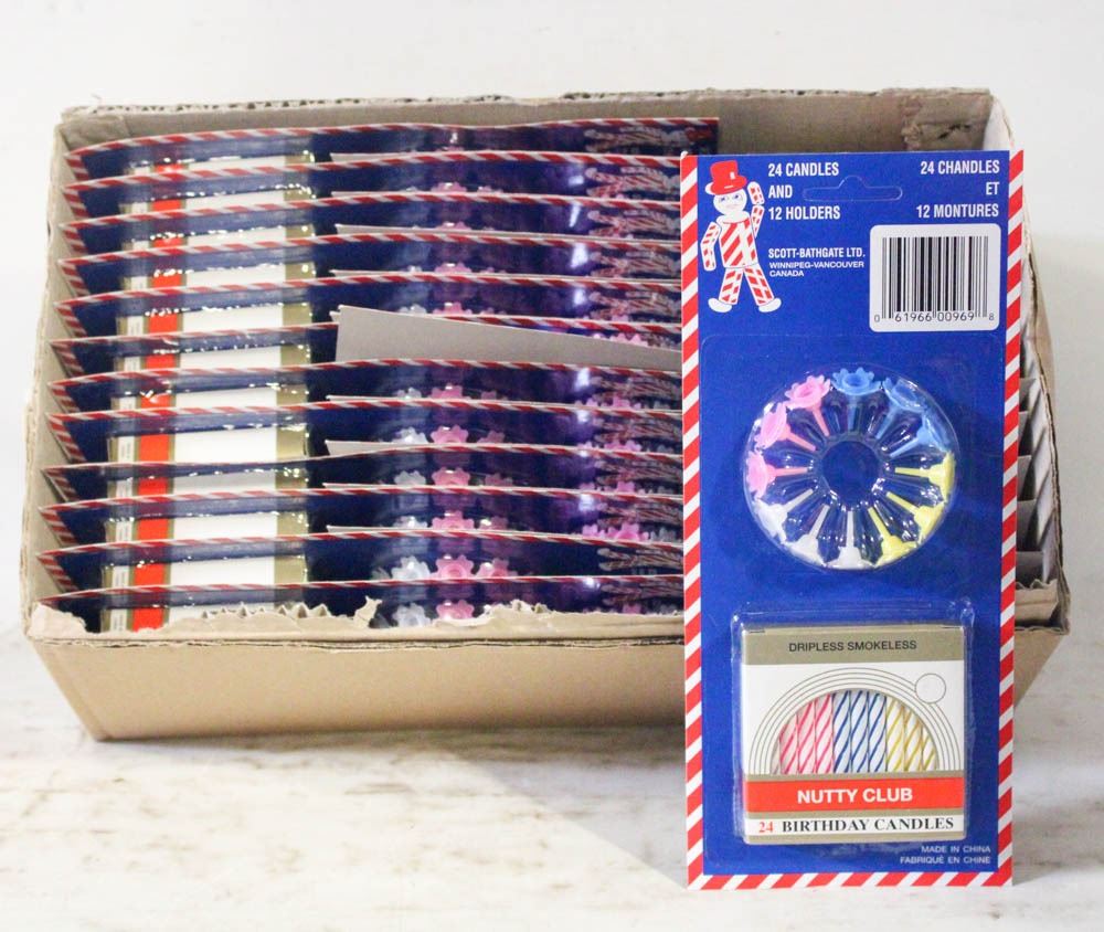 24PKS OF NUTTY CLUB BIRTHDAY CANDLES+ HOLDERS