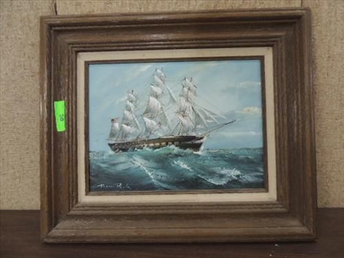 24X20 FRAMED ORIGINAL NAUTICAL OIL PAINTING ROUGH SEAS. TALL SHIP. BY BRAM PARK. AS SHOWN. VIEW PICTURE FOR DETAIL.