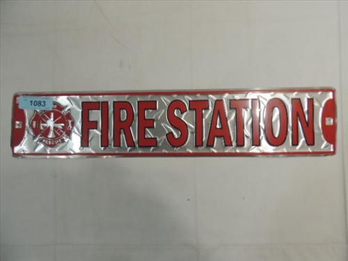 24X5 PRESSED METAL FIRE STATION & RESCUE SIGN. AS SHOWN. VIEW PICTURE FOR DETAIL.