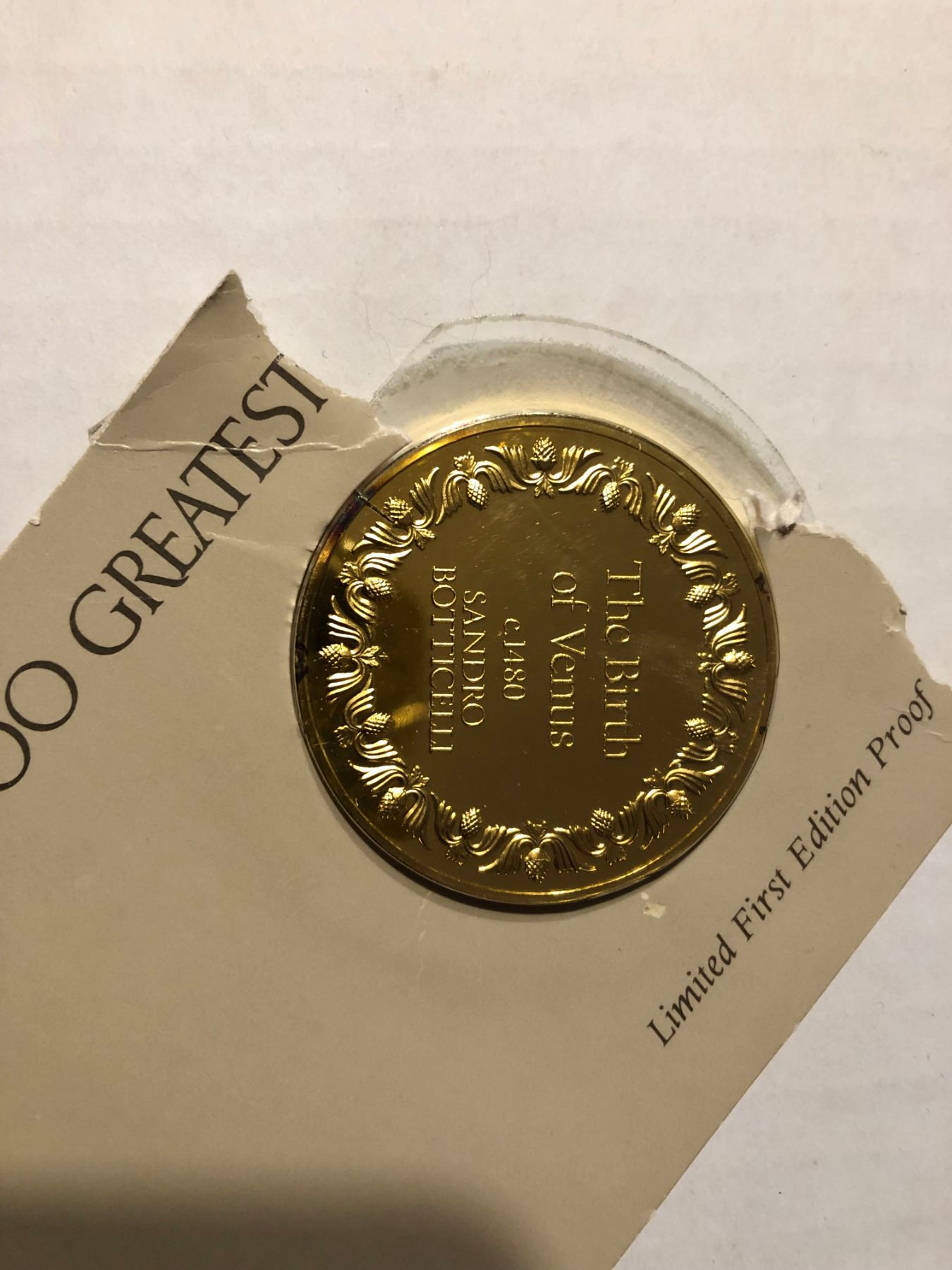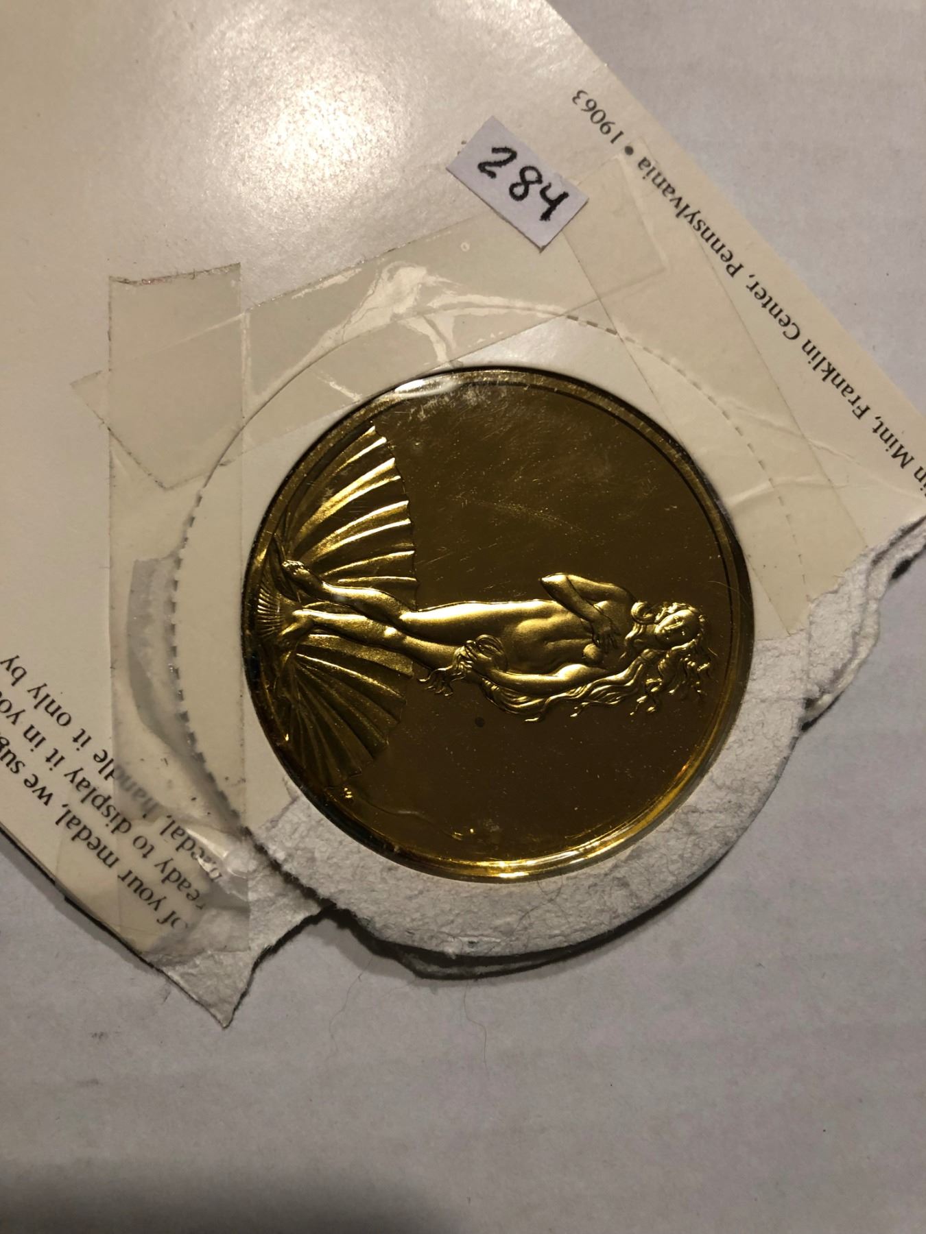 24k Gold on Sterling Silver 68.4 grams or 2.41 Ounces The 100 Greatest Masterpieces The Birth of Ven