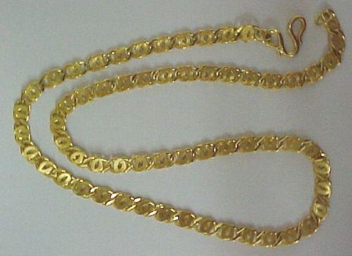 24k gold link chain measures 20" by 1/4" wide; combination of brushed and high polished links; flexible "S" hook clasp marked 9999; weight 31.9 dwt/49.7 grams (no visible defects) Estimate 500/750"