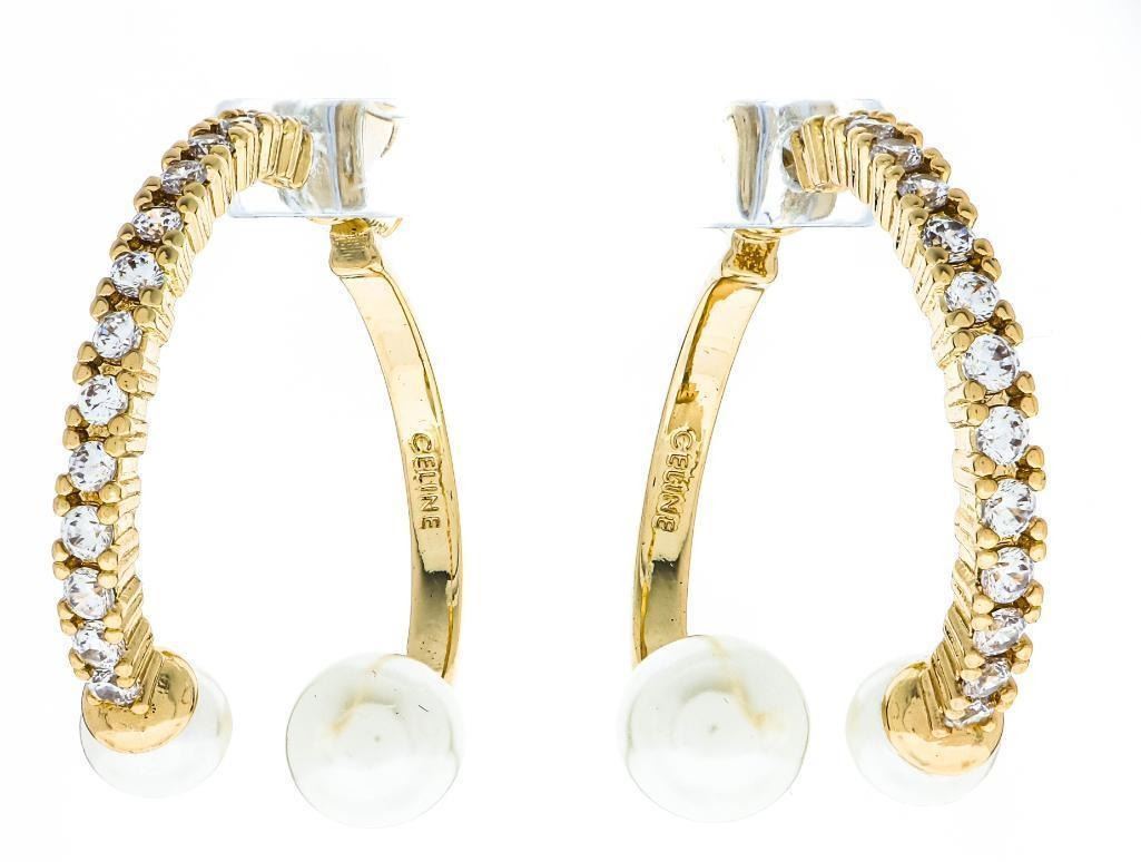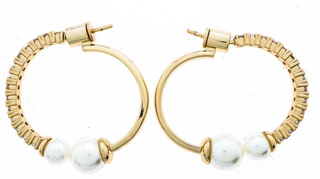 24kt G.P. Hoop Style Earrings w Pearls & Swarovski Elements