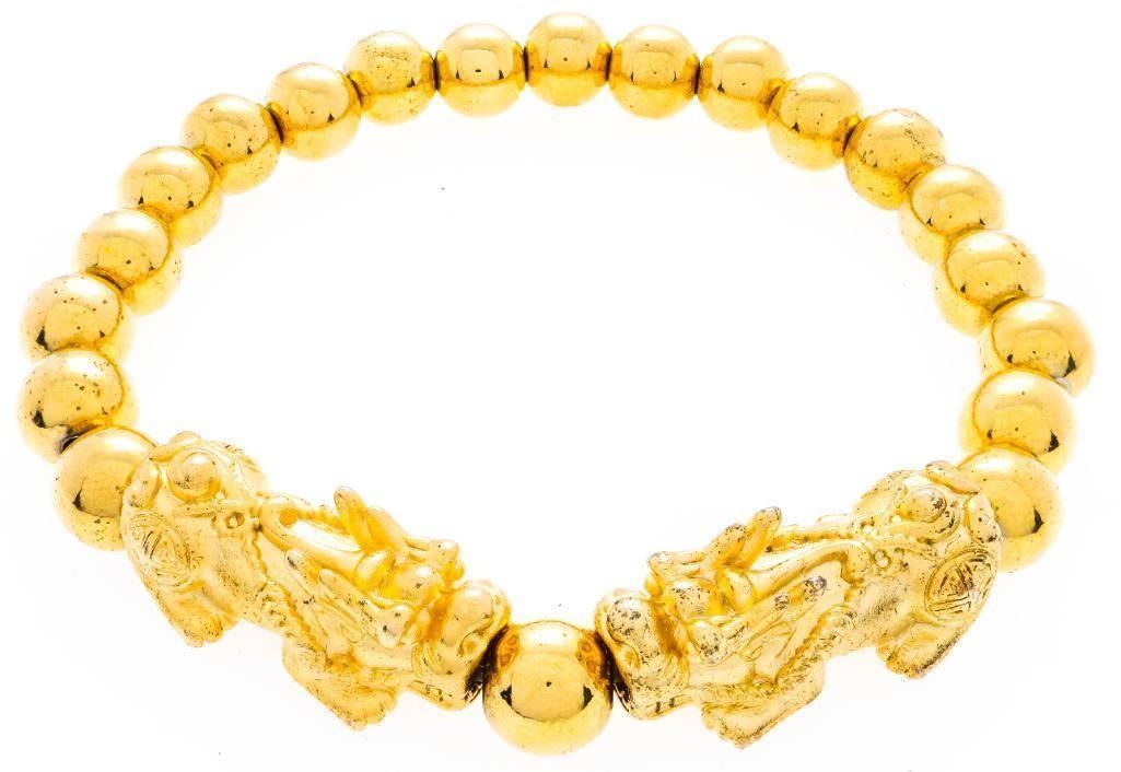 24kt Gold Overlay Bead Bracelet - 2 PIXIU - Wealth"