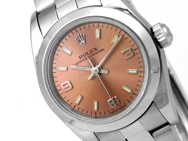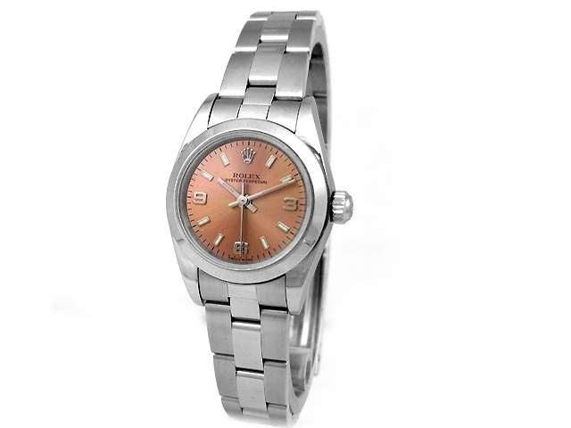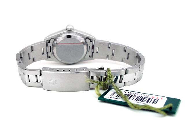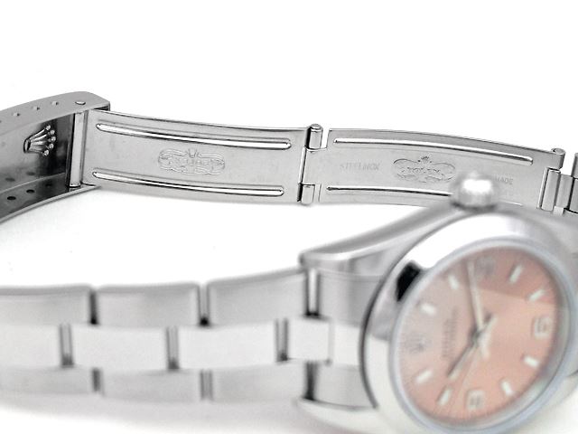 24mm Lady Rolex Stainless Steel Oyster Perpetual Watch. Pink Arabic Dial. Stainless Steel Smooth Bezel. Stainless Steel Oyster Band. Style 76080