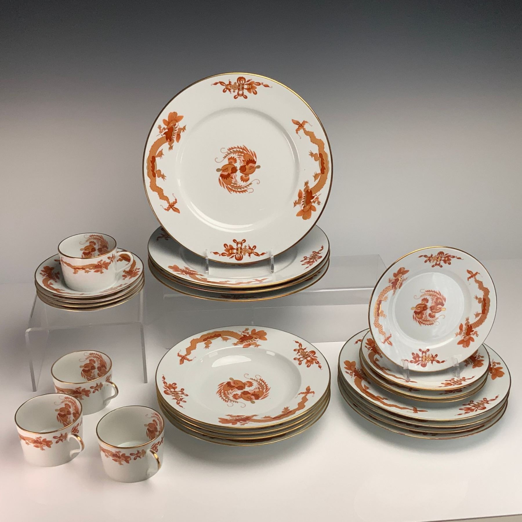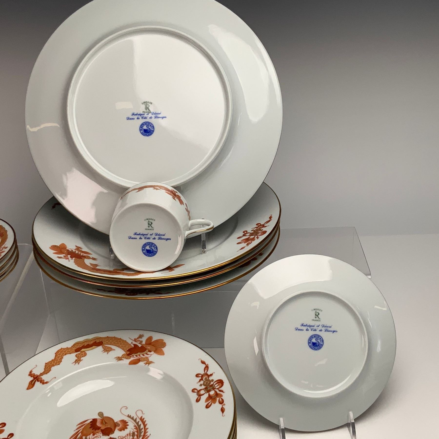 24pc Raynaud Limoges Red Dragon Dinnerware Service Set