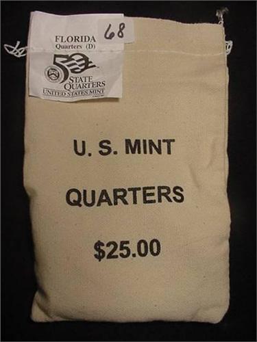 $25.00 Bag of Unopened U.S. "D" Mint Florida State Quarters BU