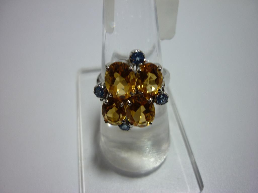 25.00 CTW BLUE TOPAZ AND CITRINE RING .925 STERLING SIL **|**|** 25.00 CTW BLUE TOPAZ AND CITRINE RING .925 STERLING SILVER ; STONE WEIGHT 6.36 CTW ; MSRP: $250