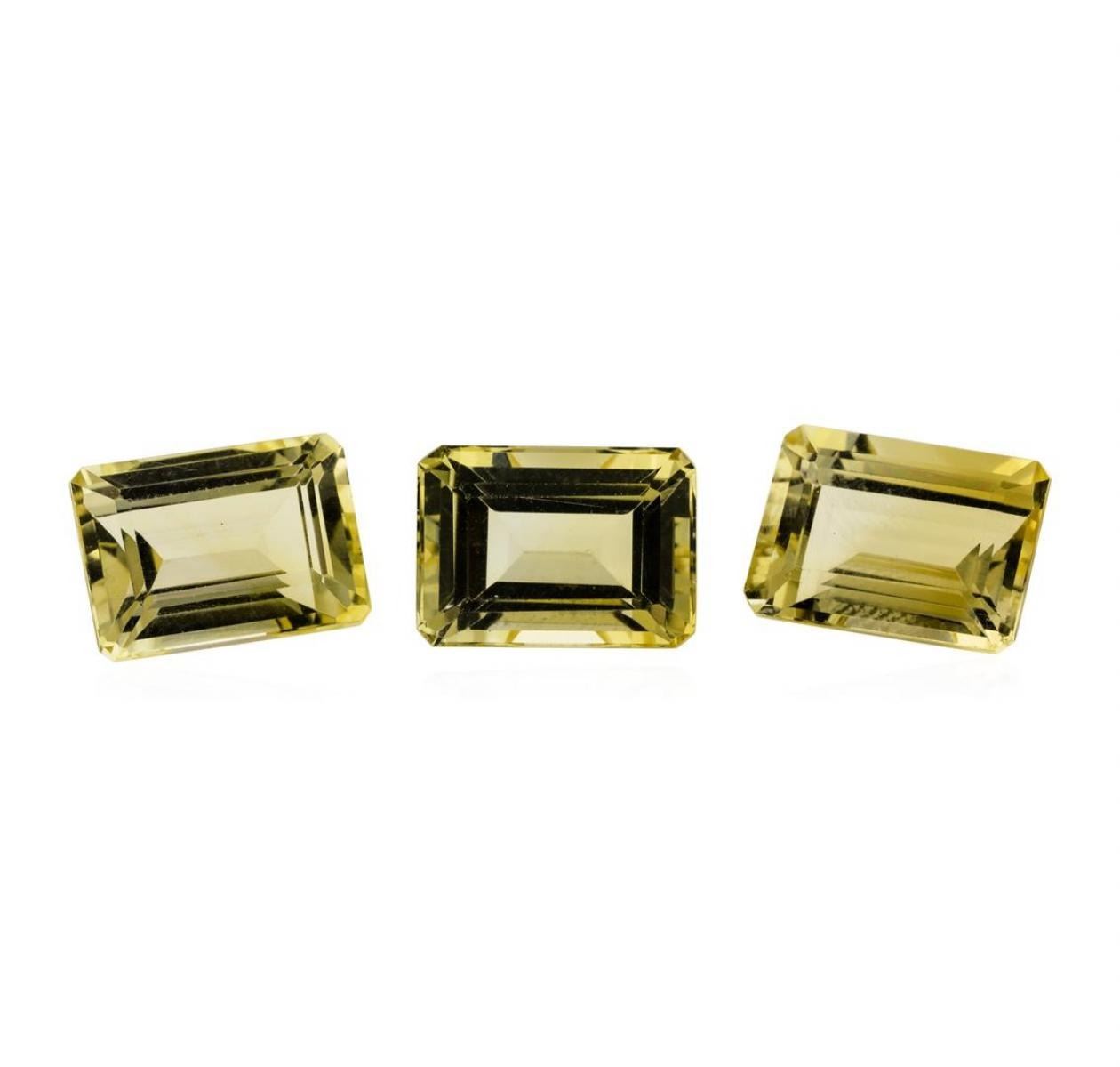 One natural emerald cut citrine quartz parcel of three with an exact weight of 25.06ctw., clarity is eye clean, slightly yellowish orange, light. Gemological Appraisals Services estimates the retail value at $751.8 GAS Appraised.