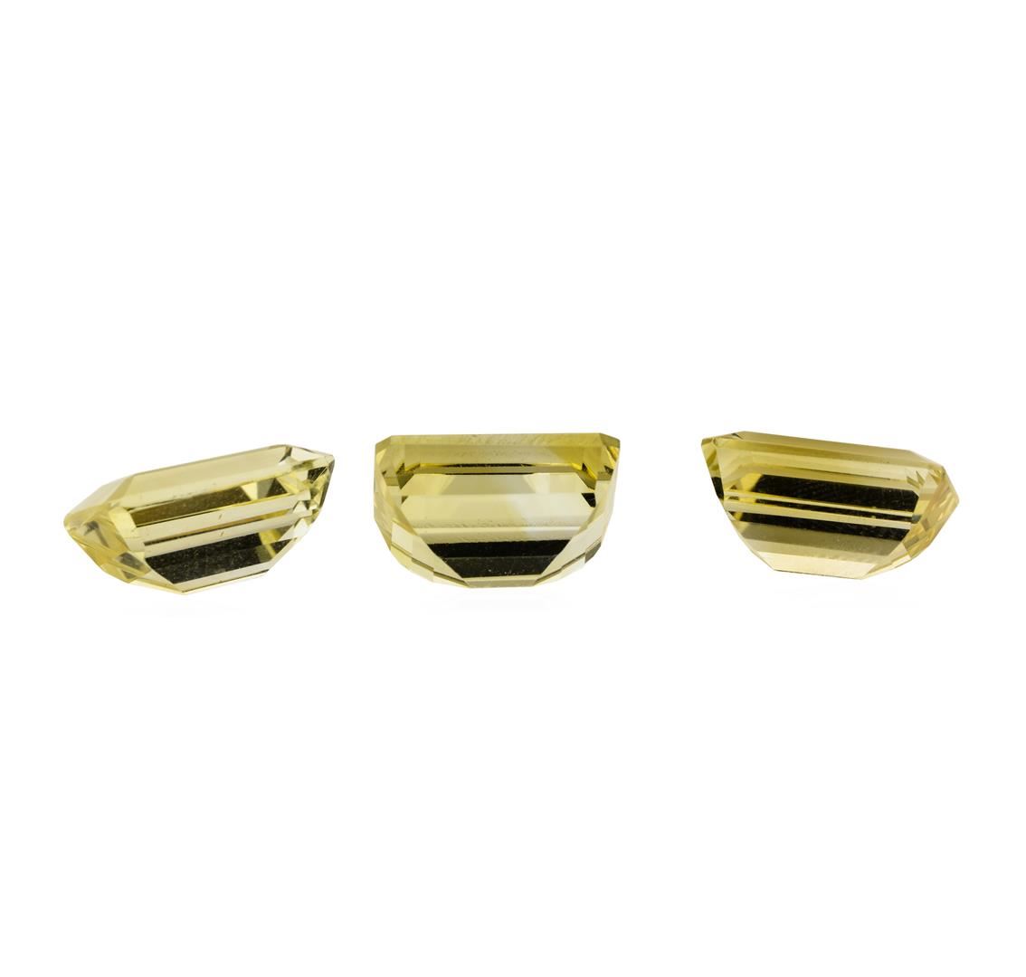 One natural emerald cut citrine quartz parcel of three with an exact weight of 25.06ctw., clarity is eye clean, slightly yellowish orange, light. Gemological Appraisals Services estimates the retail value at $751.8 GAS Appraised.