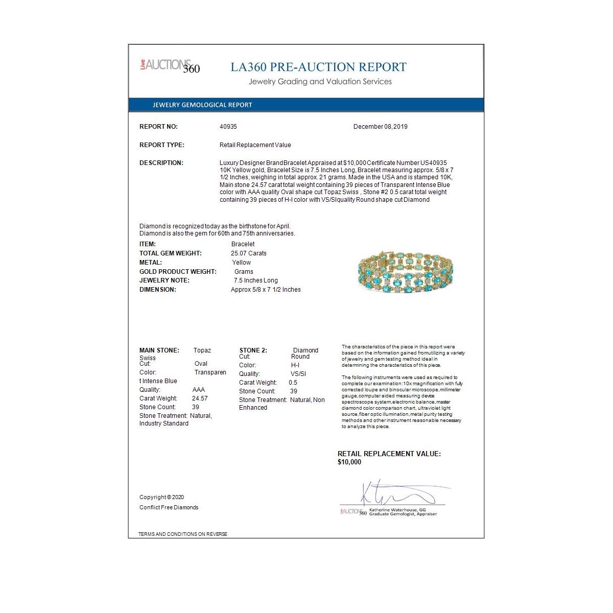 REF-227W3H - SKU: 40935 ---- 25.07 ctw Swiss Topaz & Diamond Bracelet 10K Yellow Gold