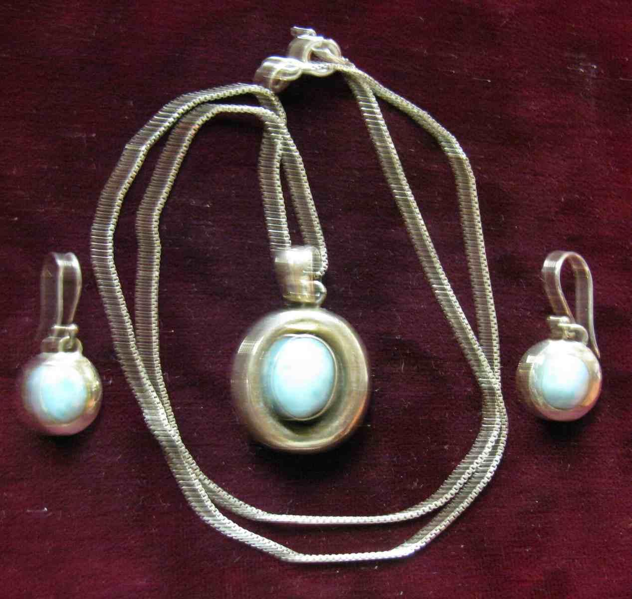 25. 18" Sterling Silver Chain & Pendant with polished stone & matching earrings.
