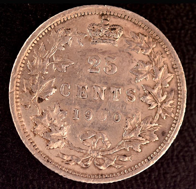 Canada 25¢, 1900. Somewhat rough surface, otherwise AU