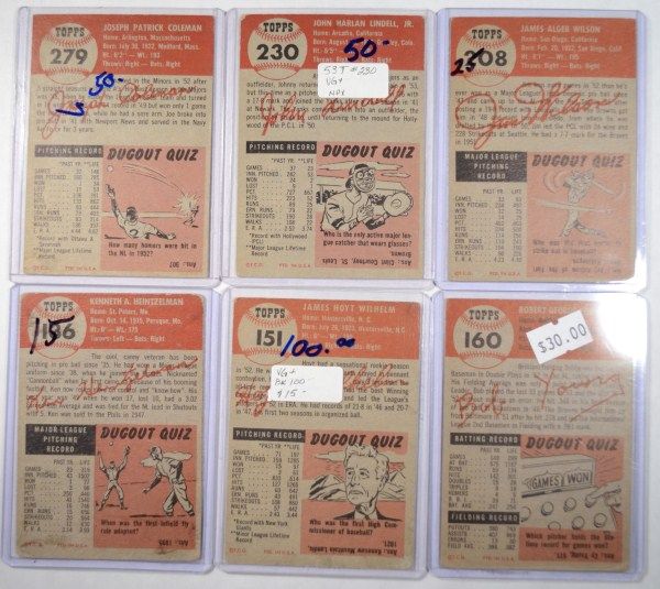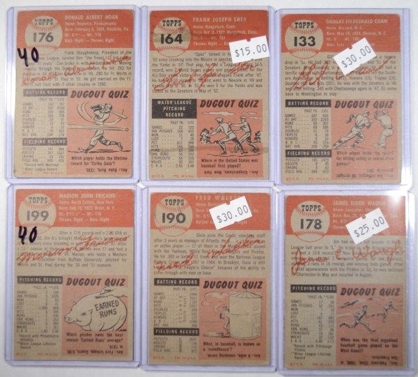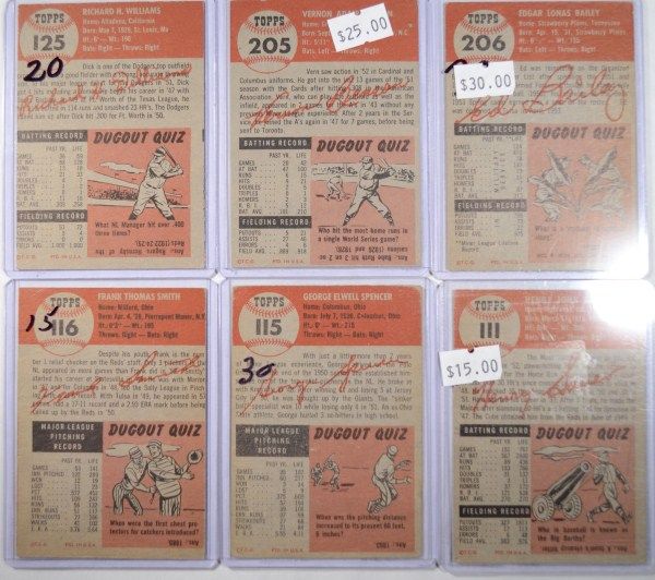 INCLUDES; #21, 47, 70, 105, 106, 109, 110, 111, 115, 116, 125, 133, 136, 151 HOYT WILHELM, 160, 164, 176, 178, 190, 199, 205, 206, 208, 230, 279 NICE LOT, BOOK VALUE $795