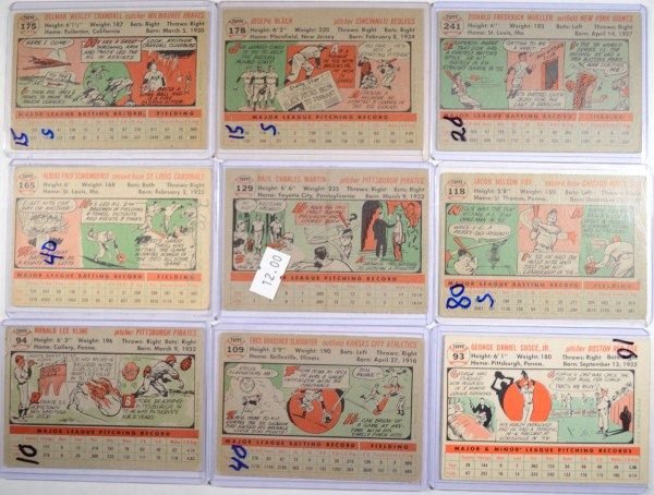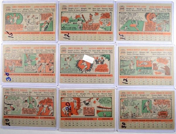 INCLUDES; #43, 54, 58, 63, 77, 83, 91, 93, 94, 109 SLAUGHTER, 118 FOX, 129, 165 SCHOENDIENST, 175, 178, 192, 199, 233 ERSKINE, 241, 250 DOBY, 280 GILLIAM NICE VGEX, SOME EX BOOK VALUE $560