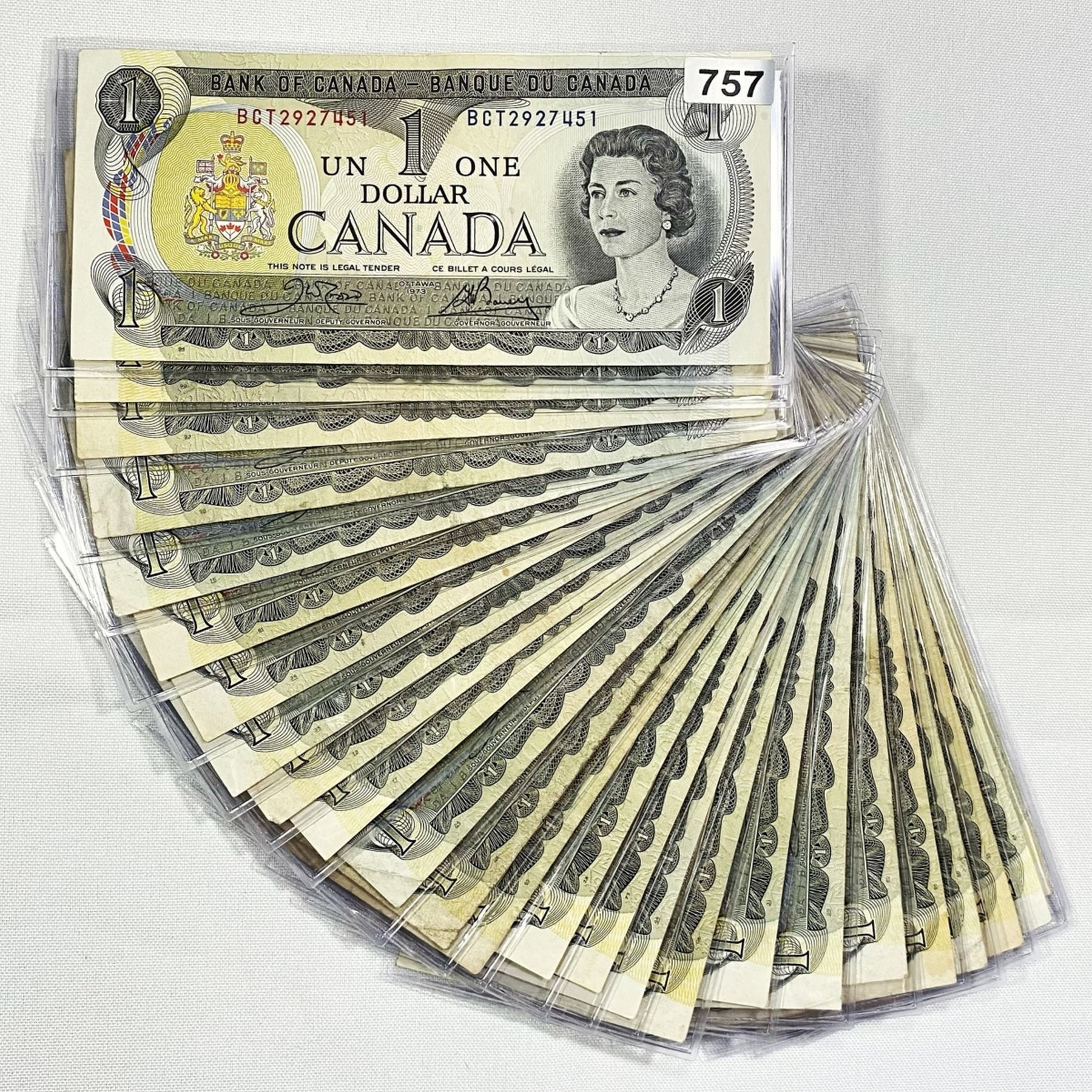 (25)1973 Queen Elizabeth Canadian $1 Notes CIRC