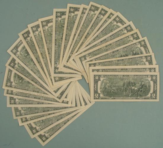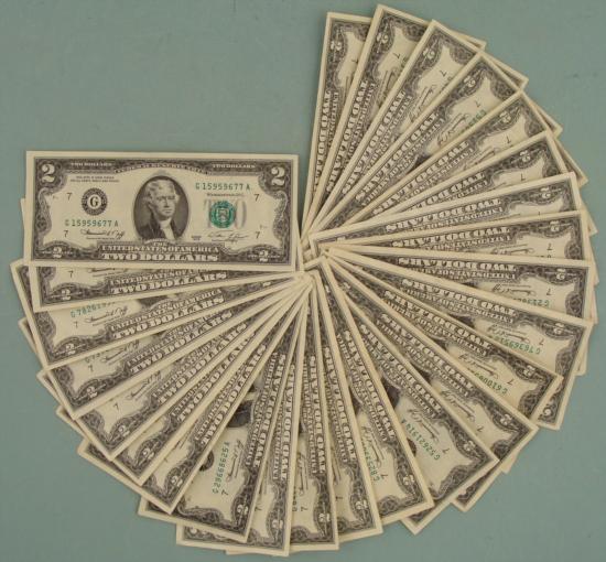(25) 1976 $2 Bills * * Mint mark: G (Chicago) * Condition: Very nice bills, many Uncirculated * Bills you receive may be different from those shown