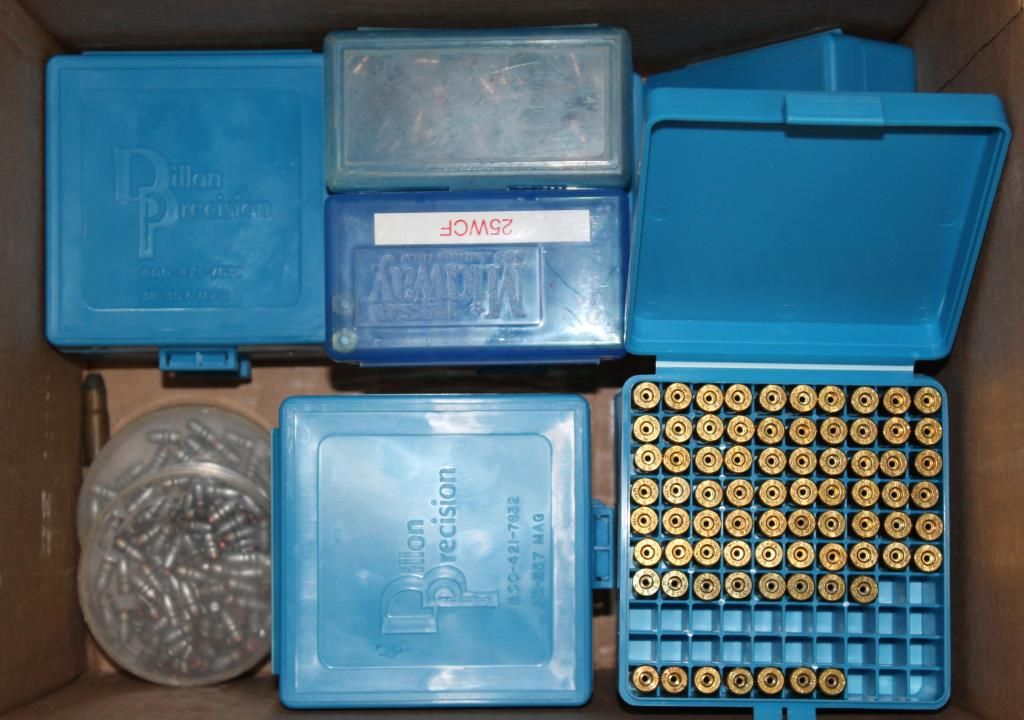 Includes 1000+ rounds of empty brass, 50+ rounds of loaded reloads, and 100+ bullets.